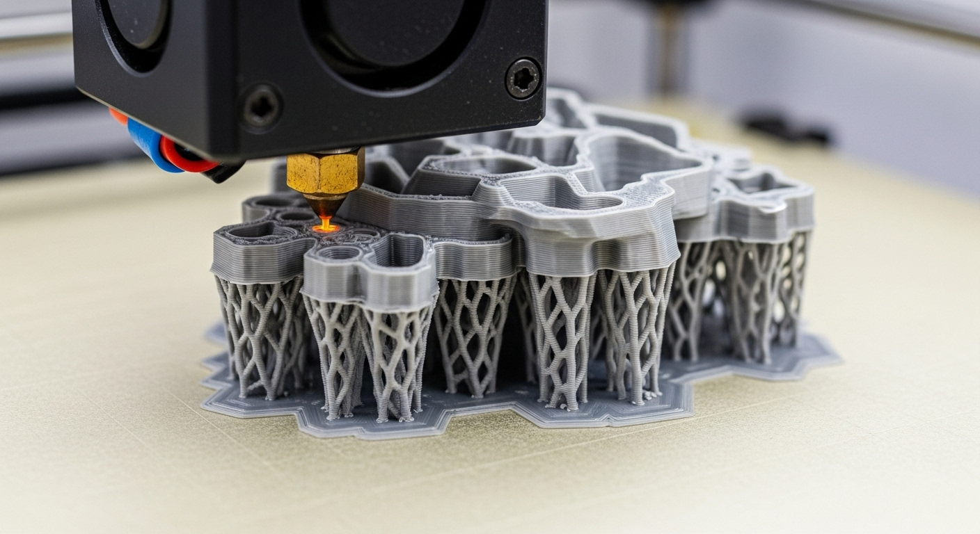 أنماط مثل Gyroid تدعم الأجزاء الضعيفة من الداخل بدون الحاجة لدعامات خارجية.