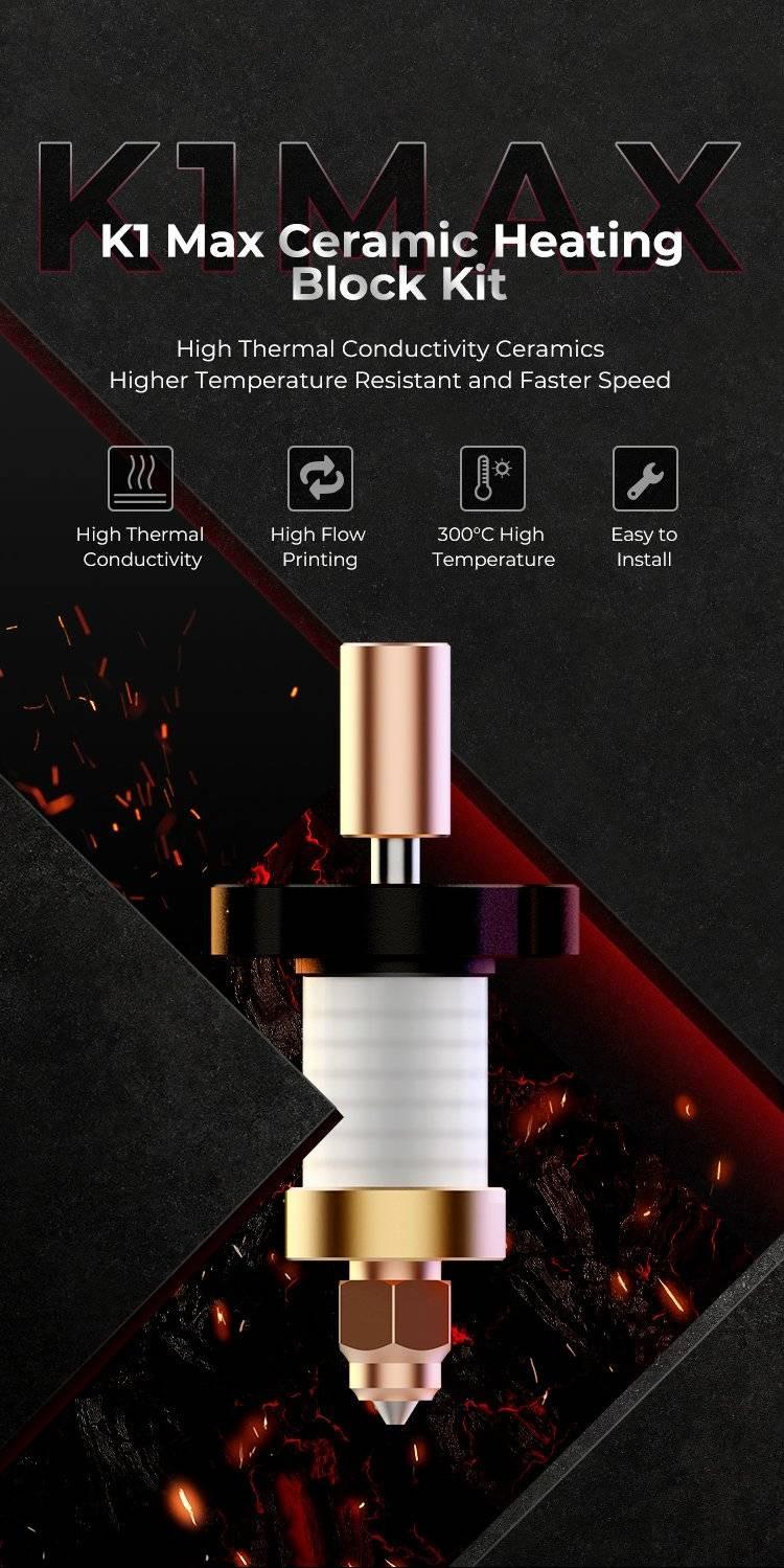 طقم K1 Max Ceramic Heating Block Kit هو الحل الأمثل لتحسين أداء طباعة طابعة K1 Max. يتميز بقدرة توصيل حراري عالية تضمن توزيعًا متساويًا للحرارة، مما يحسن من تدفق الخامات ويسمح بالطباعة بسرعة وجودة أعلى. مع قدرة تحمل درجات حرارة تصل إلى 300°C، يتيح لك هذا الطقم استخدام مجموعة واسعة من الخامات. تصميمه سهل التركيب يوفر وقتك وجهدك، مما يجعله خيارًا مثاليًا للمستخدمين الذين يسعون لتحقيق أقصى استفادة من طابعاتهم.