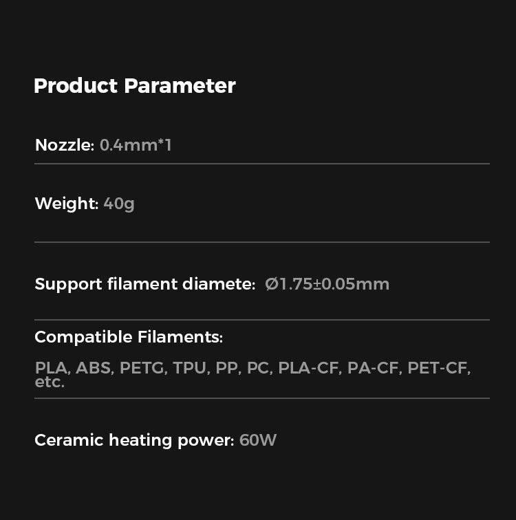 - طباعة دقيقة: توفر فوهة 0.40 مم نتائج دقيقة وجودة طباعة عالية.