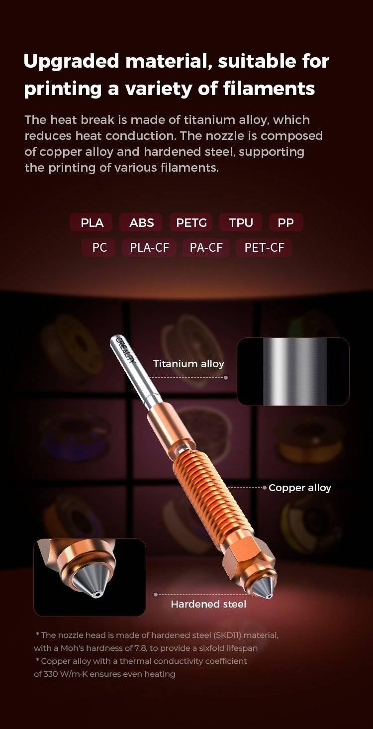 - فوهة سريعة التبديل: يسمح لك النظام بسرعة استبدال الفوهة، مما يوفر الوقت أثناء عملية الطباعة.