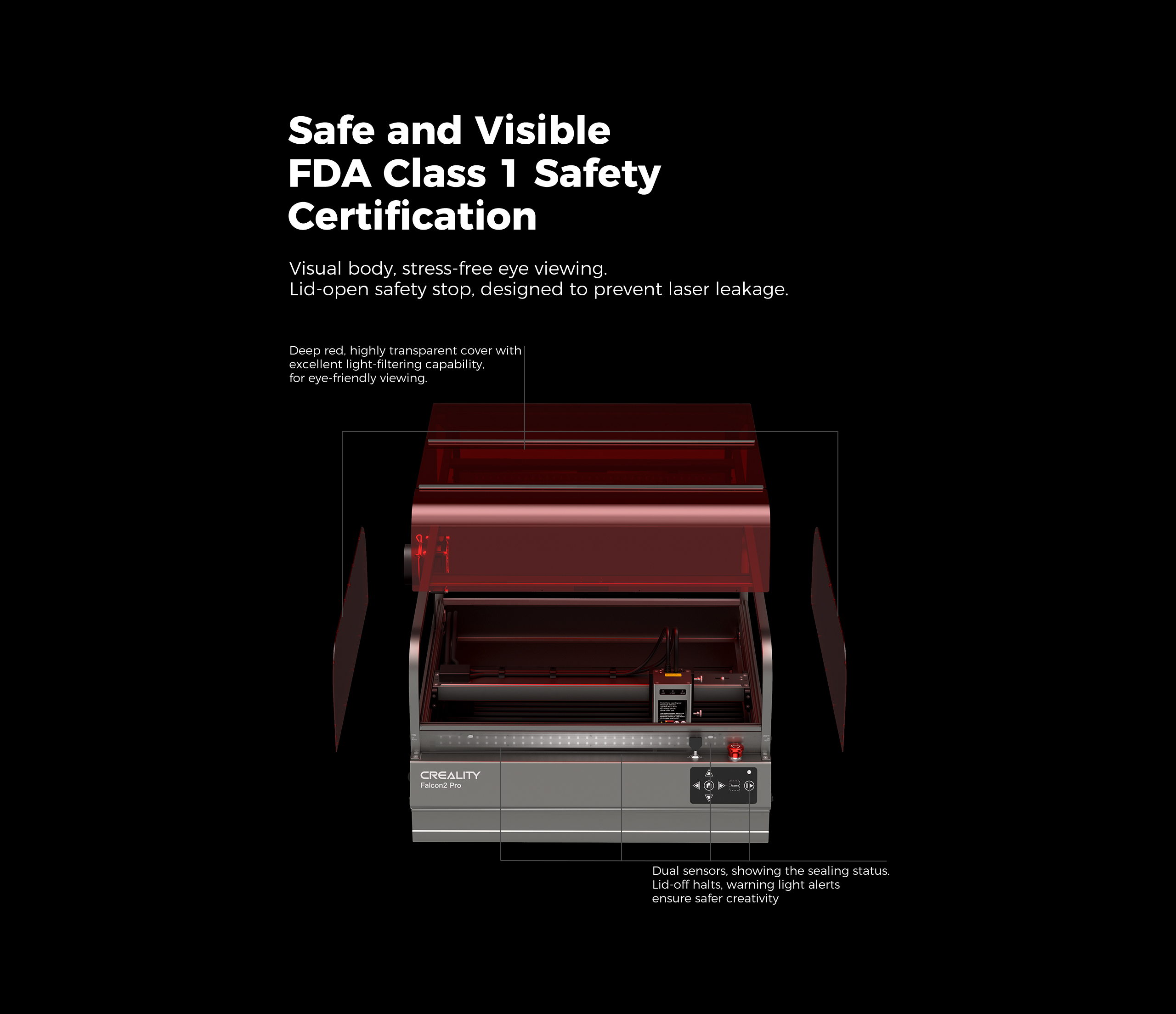 Laser Engraving and Cutting Machine – Unmatched Precision and PerformanceExperience unparalleled laser engraving and cutting with the Creality Falcon2 Pro 40W, the perfect solution for creators, hobbyists, and small businesses. This machine combines advanced safety features with high performance in a fully enclosed design, ensuring maximum protection and precision in every engraving or cutting task.