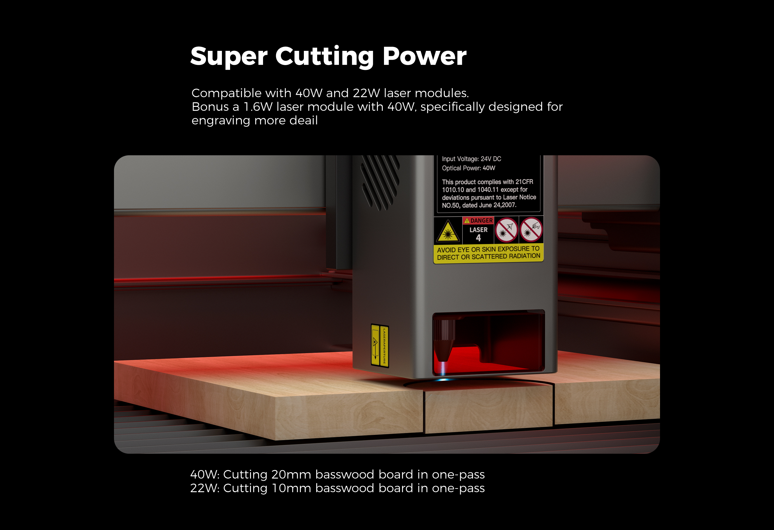 - 3 Adjustable Power Levels: Choose from (22W – 30W – 40W) based on material type and thickness.