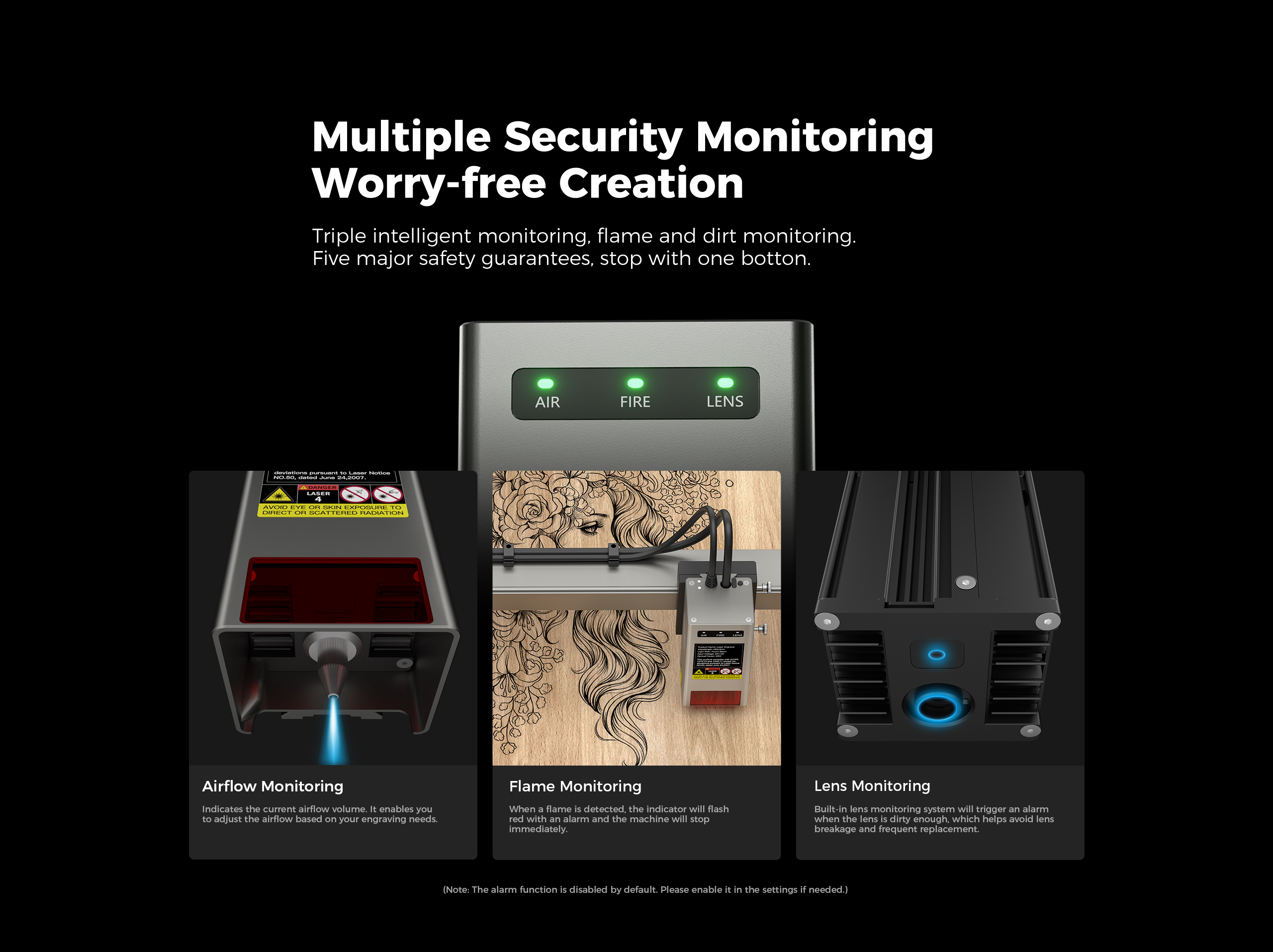 - Fully Enclosed Design: Features multiple safety sensors such as flame detection and open-door detection to ensure complete protection for you and your machine.