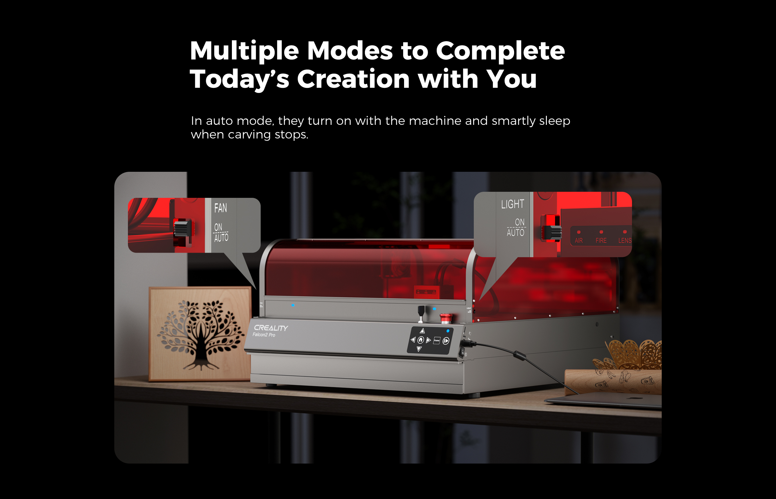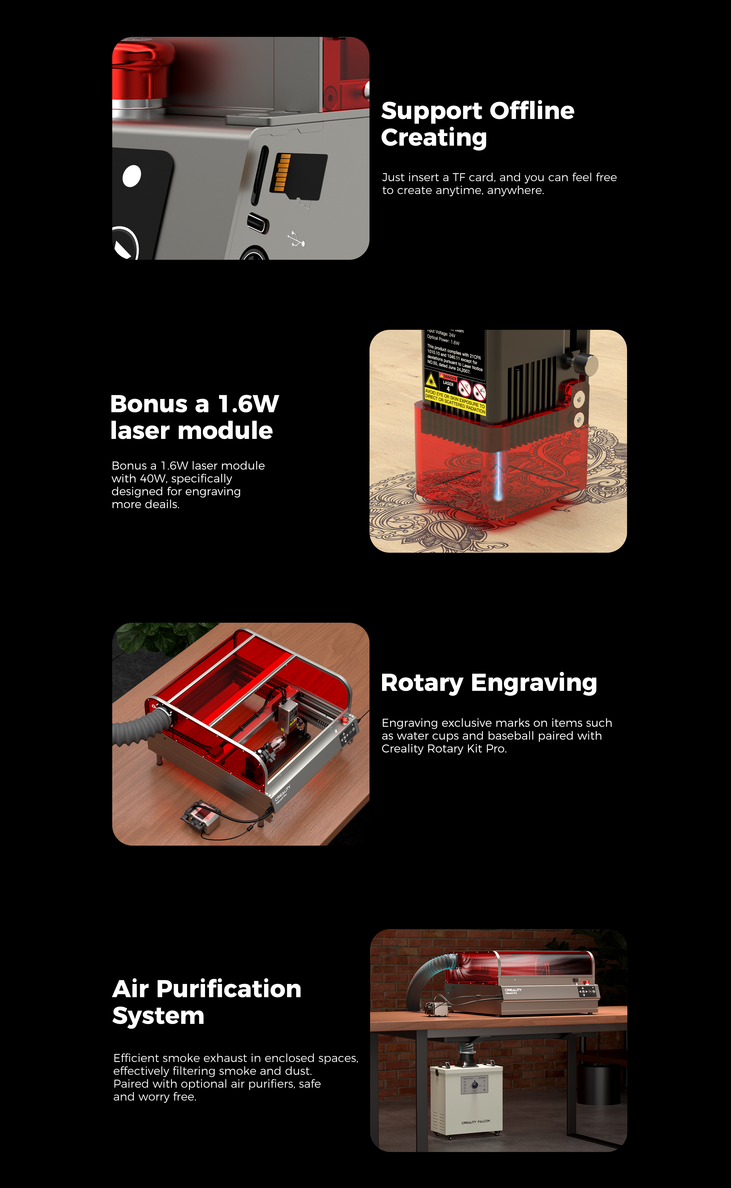 - Rotary Engraving Support: Compatible with Creality's Rotary Kit for engraving on round objects like mugs and bottles.