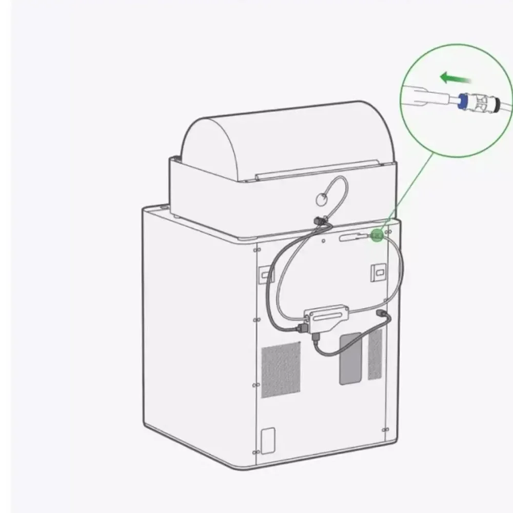 تركيب وصلات أنابيب المواد له اتجاه واضح للاستخدام. كما هو موضح في الشكل أدناه ، يرجى توصيل أنبوب PTFE في نهاية إخراج المخزن المؤقت بالطرف N وأنبوب PTFE في رأس الأداة بنهاية OUT. لاحظ أن الاتصال العكسي قد يتسبب في تشويش المواد. يرجى التأكد من صحة اتجاه التثبيت ؛
